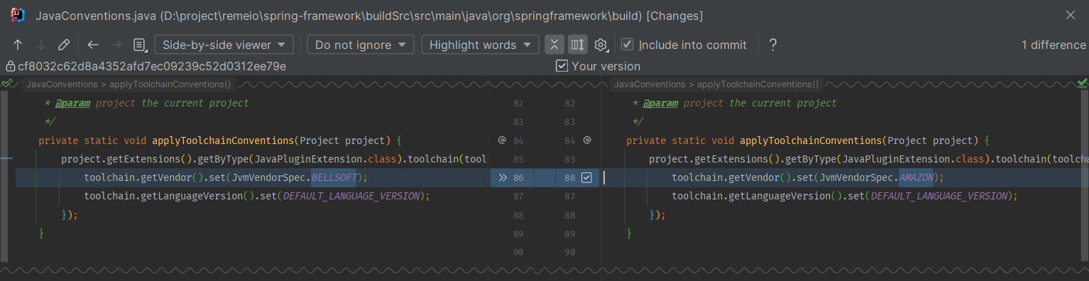 如果使用的JDK是Amazon Corretto version 17.0.7,需要修改org.springframework.build.JavaConventions#applyToolchainConventions方法:
